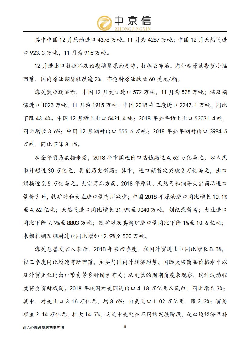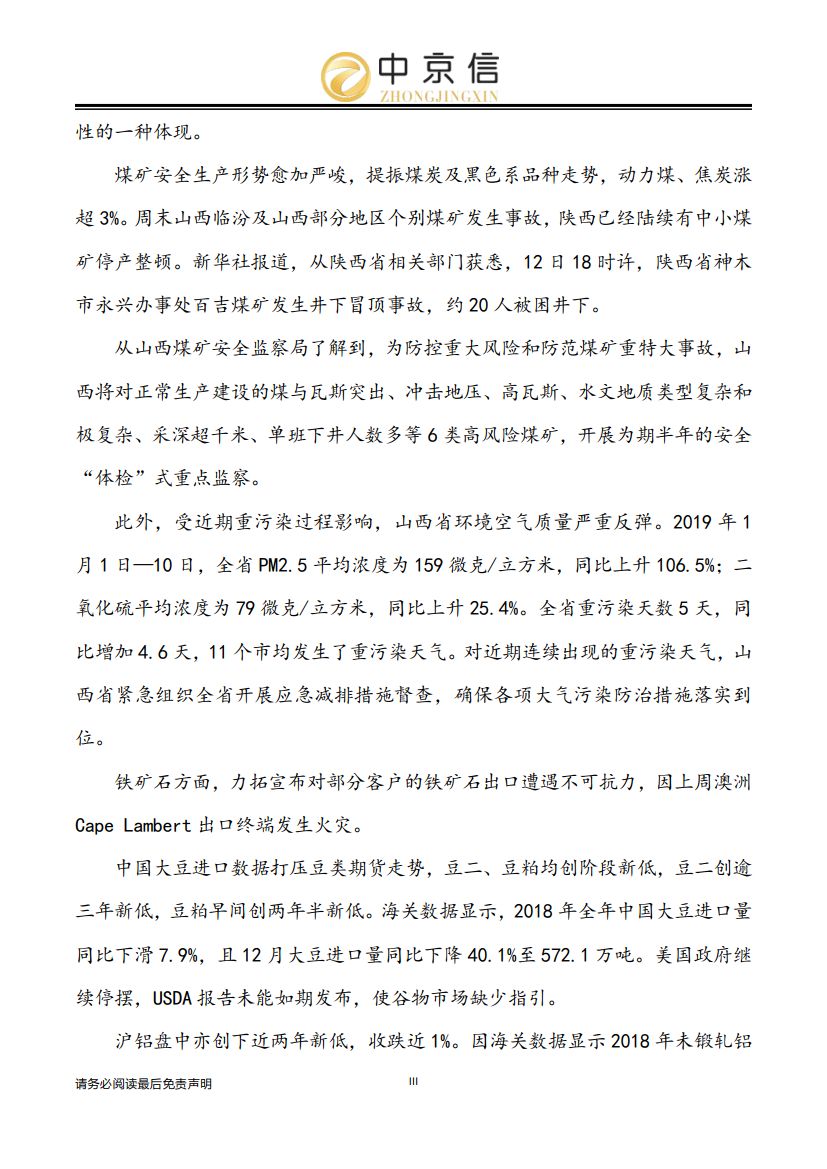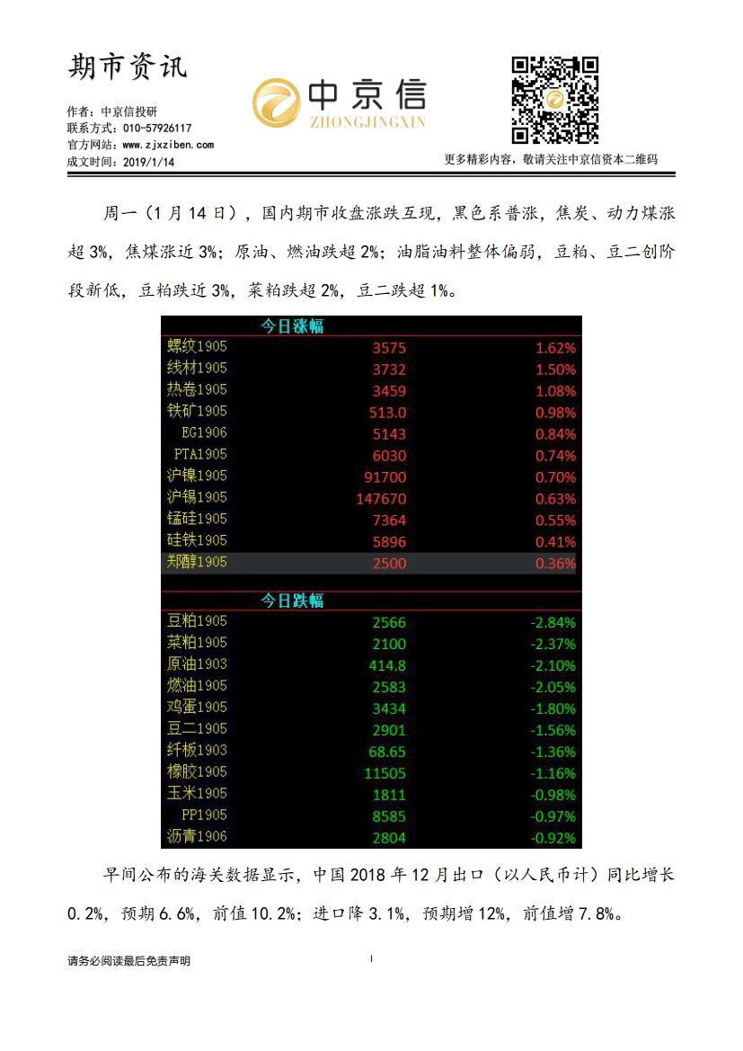 期市资讯——2019.1.14